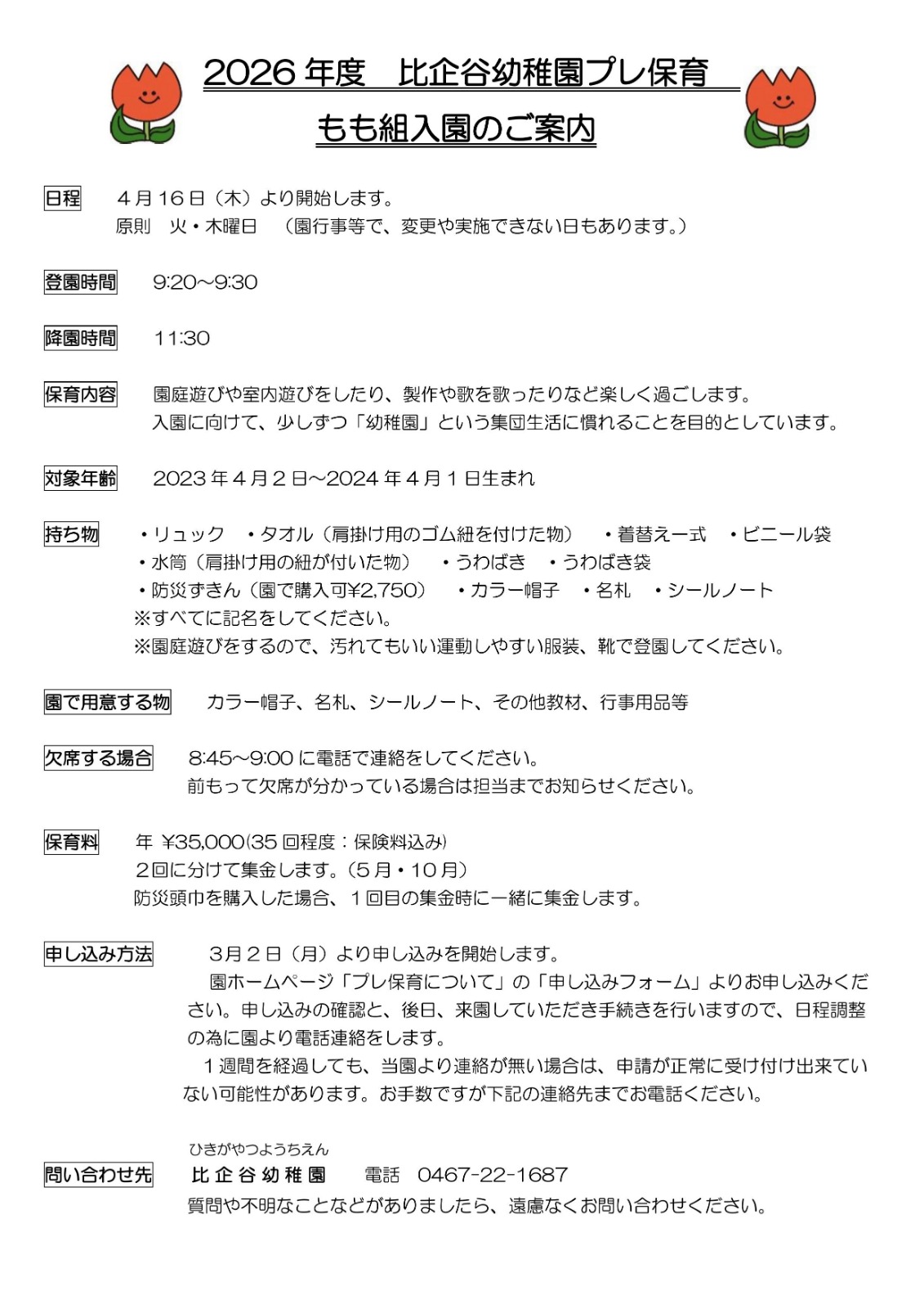 後日、来園していただき手続きを行いますので、日程調整の為に園より電話連絡をします。